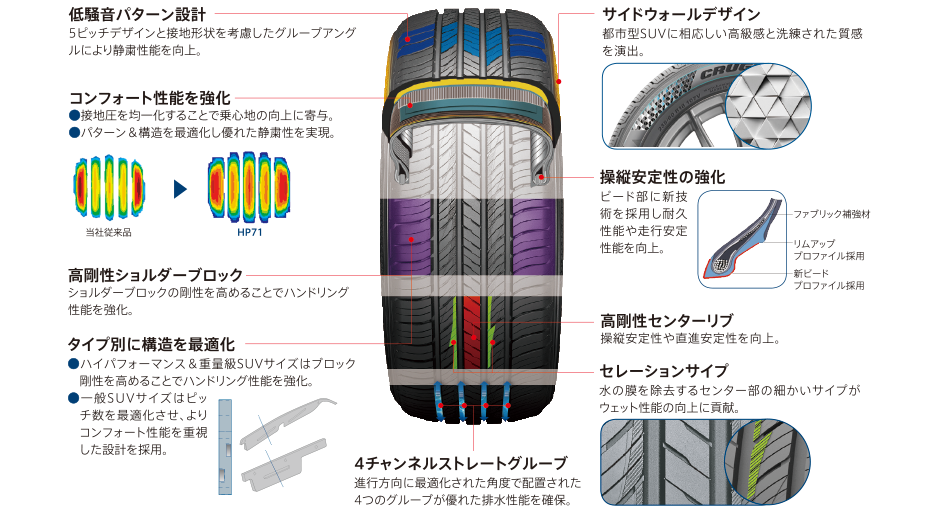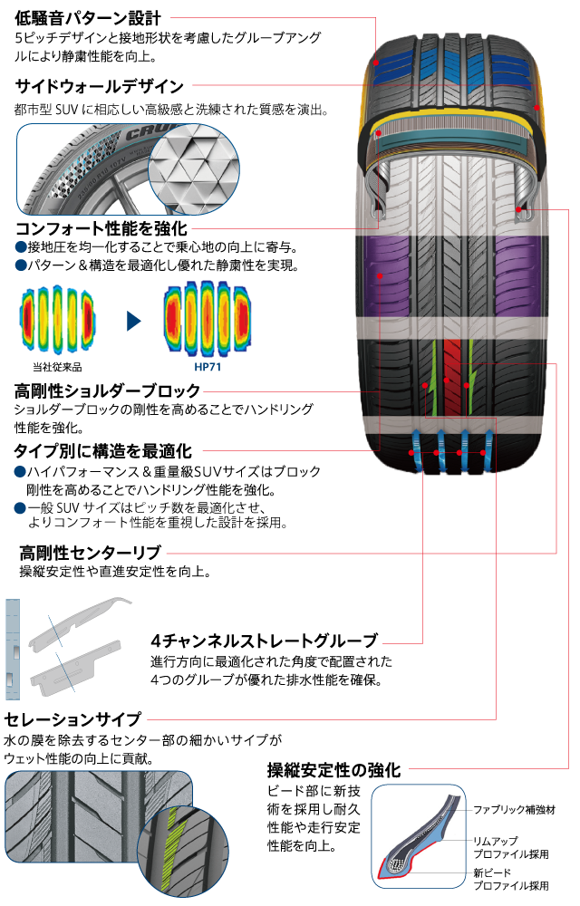 SUV専用タイヤを各メーカーから発表されていますが、費用対効果を考えればCRUGEN HP71がダントツかと思います。