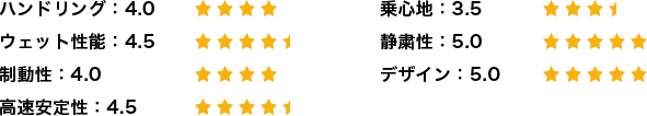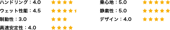 ハンドリングや制動性に関しても不満はなく、本気の急ブレーキをかけたことはまだないものの、走行する上で運転しやすい十分な反応と制動性を感じてます。また、ウェット性能に関しても晴れた日と運転の仕方を変えることなく、不安を感じたことはありません。