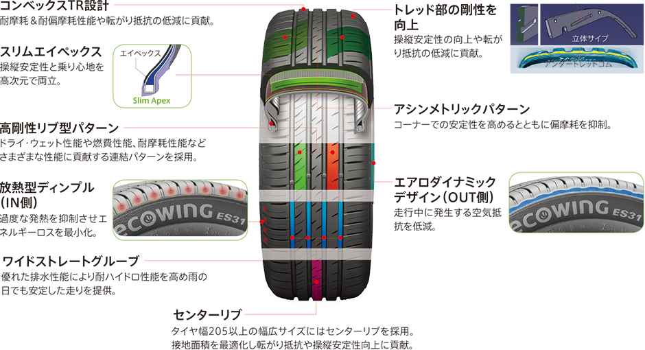 エコウィングES31はトータルバランスも良く、国産エコタイヤに引けを取らないよくできたスタンダードタイヤだと思います。