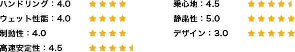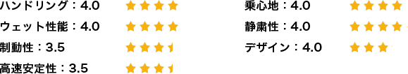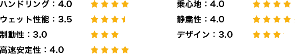 制動性能は自分の思った通りに利きしっかりと止まってくれ、操作性も高く安心感があると思います。高速走行時ではしっかりとした安定感があり進路変更時でも安心ができ操縦性も高いものだと感じました。