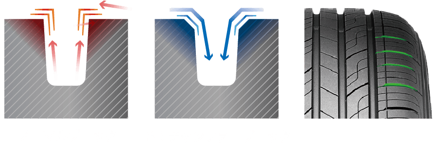 優れた走行性能とともに偏摩耗の抑制にも効果を発揮し、摩耗後でも静かな走りを実現。