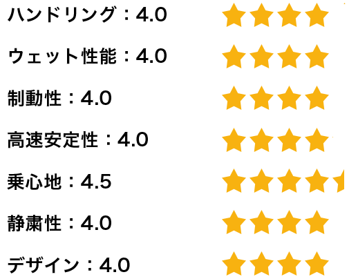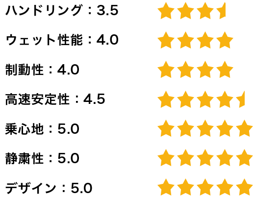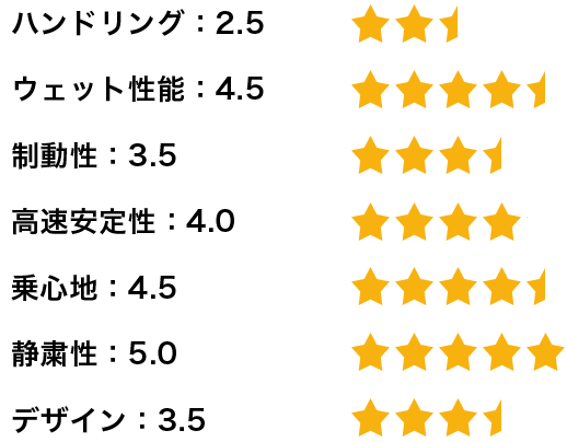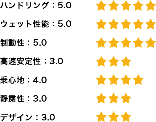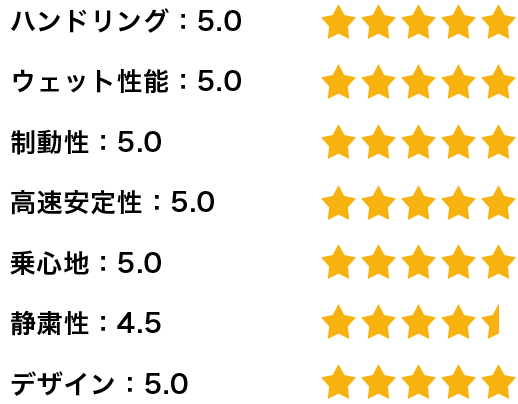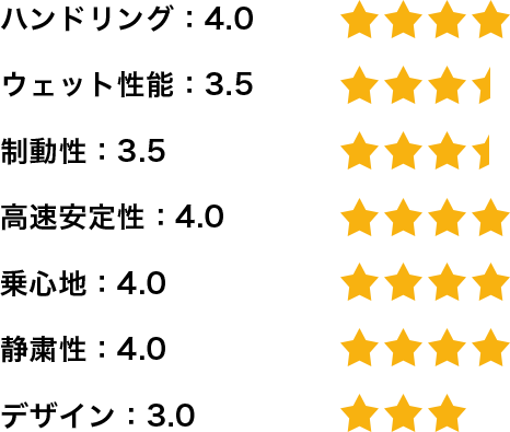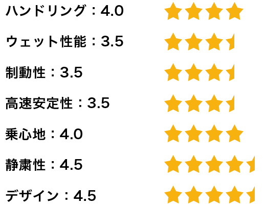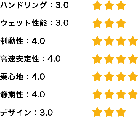 私は基本的に高速走行が多いのですが、安定性と静粛性も実感できます。高速道路での滑らかさは格段に上がったと思います。乗っていてアクセルを踏んだ時の始動性が格段に上がり、体がこのタイヤに慣れてしまったので、もう他のタイヤは履けないと思っています。