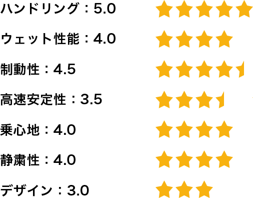 HP71ではハンドルキックバックがナチュラルで大変安心安定していました。また、インターチェンジやジャンクションでもドライ路面同様踏ん張ることが良く解りました。
