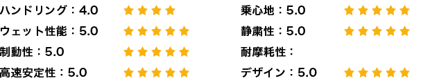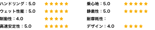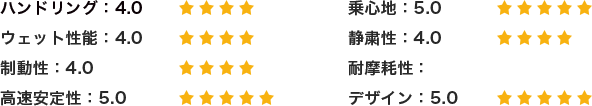 先日、実家の往復の際に東名高速、首都高を往復80キロほど走行した際、途中、局地的雷雨にもあいました。高速安定性、燃費、ウエット性能に関して大満足です。さらに夏休みの遠乗り時に判断いたします。サイドウォールのキラキラするデザインは特徴的で目を引きますね!
