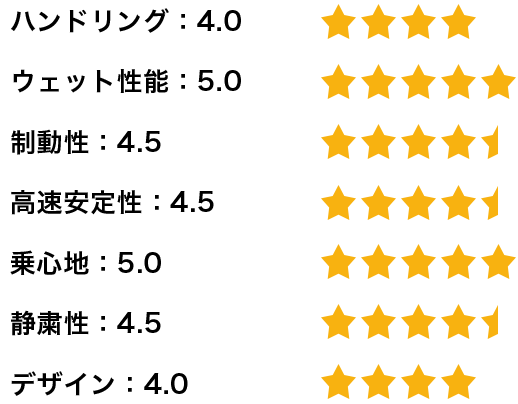 音の静かさも、ハンドリングも率直に言ってこれまでのプレミアムタイヤと変わらず、コストパフォーマンスが高いタイヤだと思いました。
