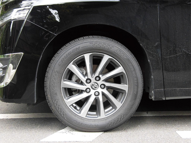 純正タイヤからの履き替えであり、SUV用タイヤは初めてです。ハイブリッド車ということから静粛性は非常に重視しています。実際に乗ってみるととても静かでした。高速走行中においても、1列目と3列目での会話は支障なく行えますし、EVモード走行中に窓を開けてみましたが、不快なノイズはありません。乗り心地も良く、細かい段差は全く気になりません。かと言ってフワフワした感覚はなく、しっかりと路面に吸い付いて走っている印象があり、晴雨を問わずに重量級のボディを安心して任せられます。高速でのレーンチェンジもスムーズです。またチェッカーフラッグのようなサイドウォールのデザインはスポーティで格好良い。
