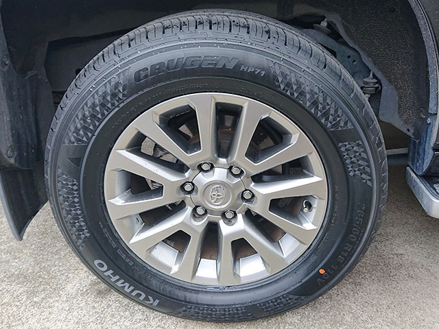 ホイールはプラド純正アルミホイールで、ホイールとの相性があるとは思いますが、装着直後よりも高速走行安定性が高いという感じがしました。