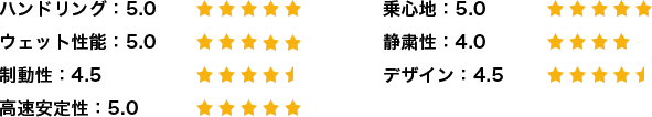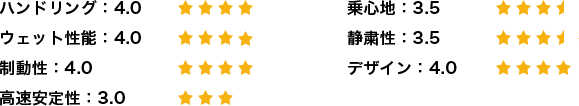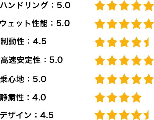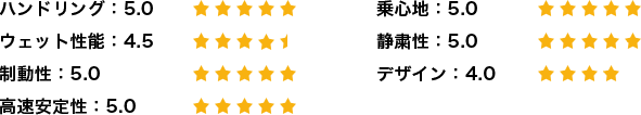 制動性能は自分の思った通りに利きしっかりと止まってくれ、操作性も高く安心感があると思います。高速走行時ではしっかりとした安定感があり進路変更時でも安心ができ操縦性も高いものだと感じました。