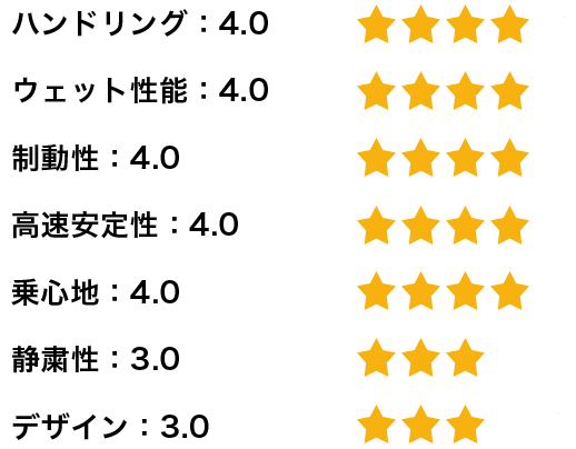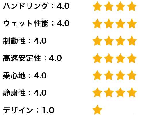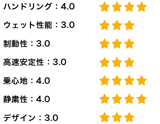 【総評】とても静かで心地の良いタイヤであり、性能バランスも非常に良いので大変満足しております。