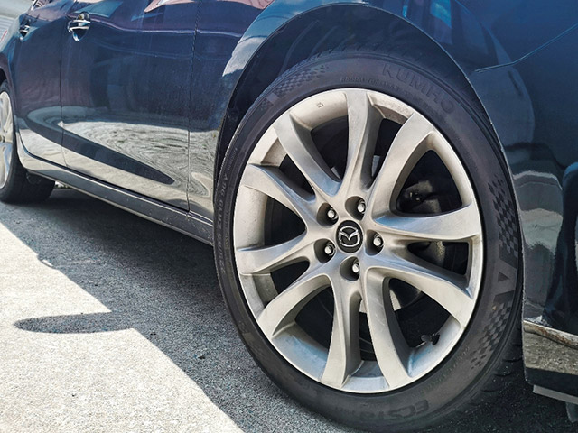 ■ハンドリング:アテンザのハンドリングはもともと良いと思っています。今回タイヤを変えたことで磨きがかかったように感じます。高速コーナーが楽しくなりました。