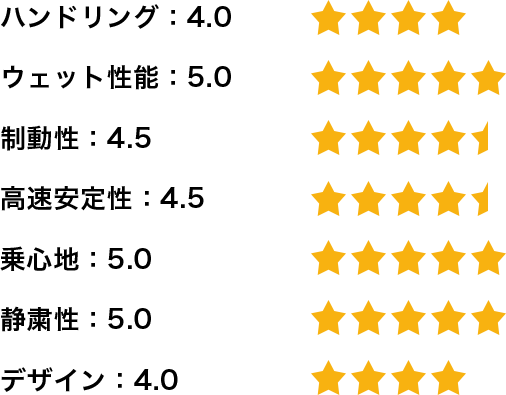 特にしっかり排水し、タイヤの接地感が失われず、悪天候下でも安心して走れる信頼のおけるタイヤです。