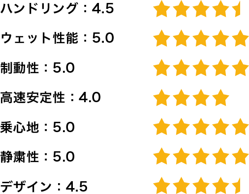 結果から言うと、直進安定性、排水性、雨中ブレーキングともに安心できるものでした。