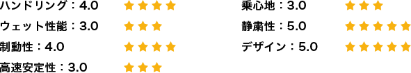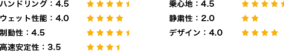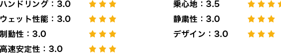 ■高速安定性:高速時のハンドリングが軽く、不安定感が若干あり少し不安です。