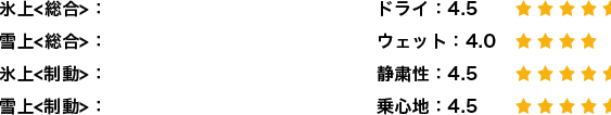 暖冬で雪道での評価がほとんどできず性能評価も同じ結果となっております。
